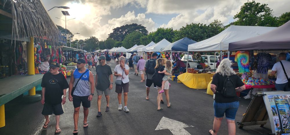But that’s not all! The market buzzes with delicious island foods, featuring fragrant coffee, freshly baked pastries, and refreshing smoothies. You can enjoy the lively atmosphere filled with both live and recorded island music as you wander around.
